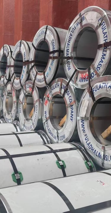· لرول المغلون: يحتوي على طبقة من الزنك، مما يعزز مقاومته للتآكل. يُستخدم في تطبيقات البناء الخارجية، مثل الأسقف والسخانات والخزانات.
